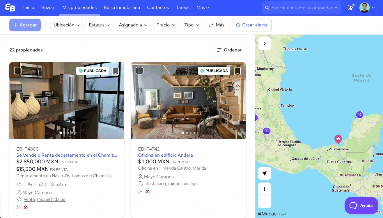 💡 Tip: Las Listas de propiedades no solo te ayudan a llevar búsquedas más organizadas, sino también a fidelizar a tus clientes. Puedes decirles que si les interesan otras propiedades, las agreguen al Tablero y tú te encargarás de hacer las llamadas y todo el seguimiento con el otro asesor.
