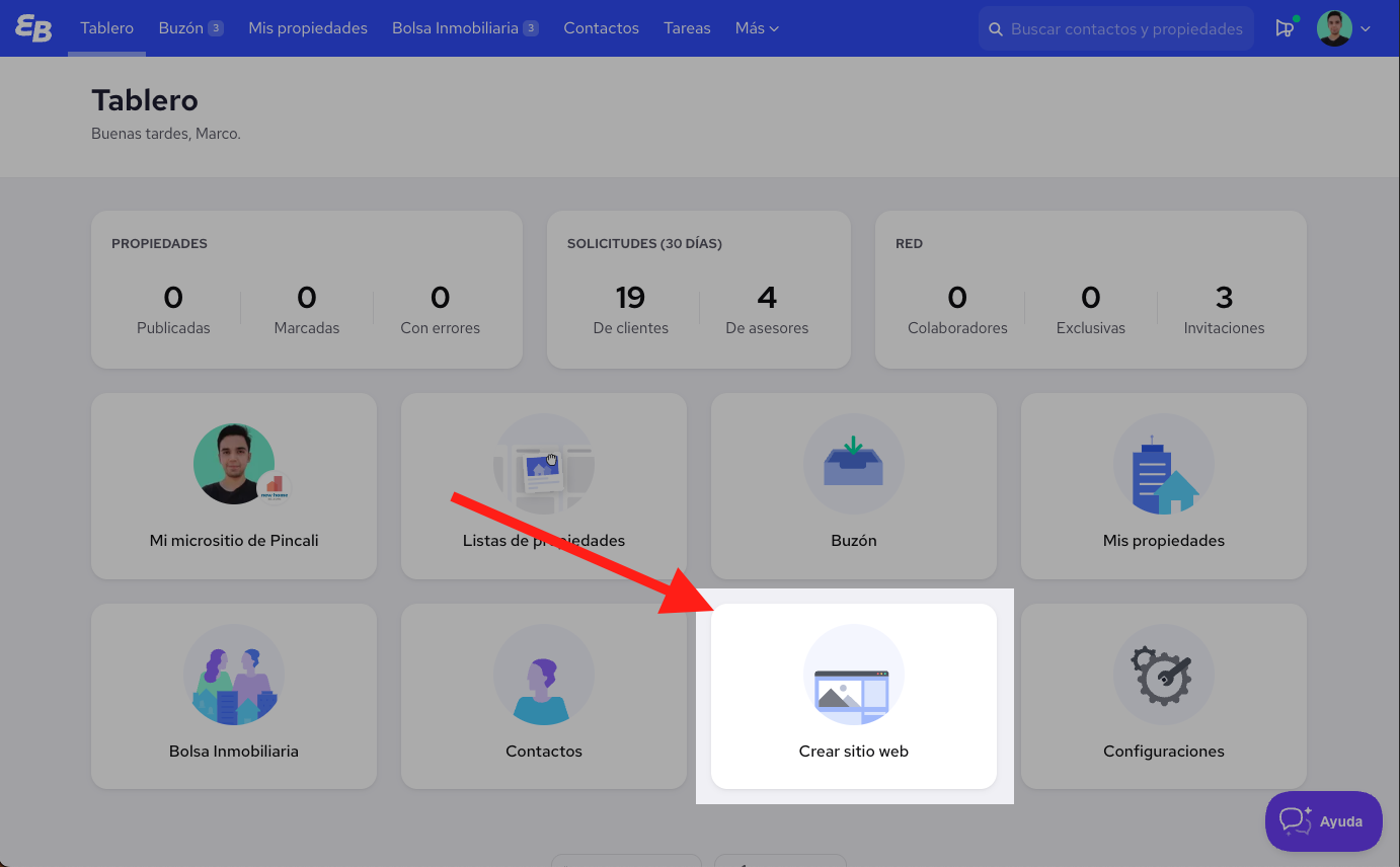 Si aún no has creado tu sitio web, puedes hacerlo dando clic en Crear sitio web y eligiendo el diseño que más te guste. No te preocupes mucho por el diseño que elijas al principio; después podrás cambiar de plantilla si no te convence.